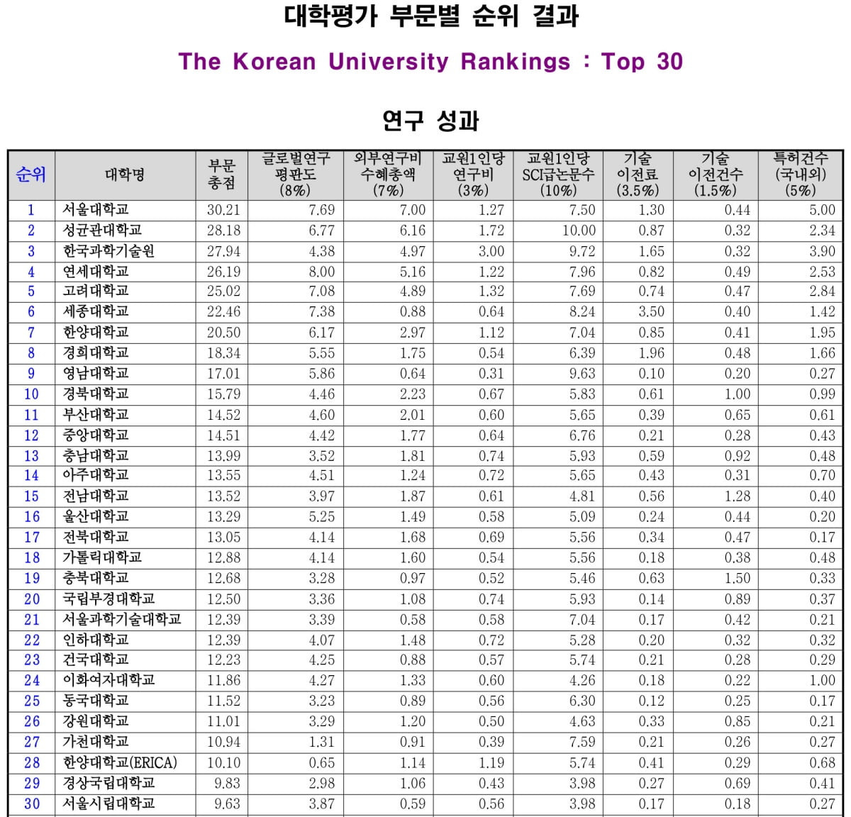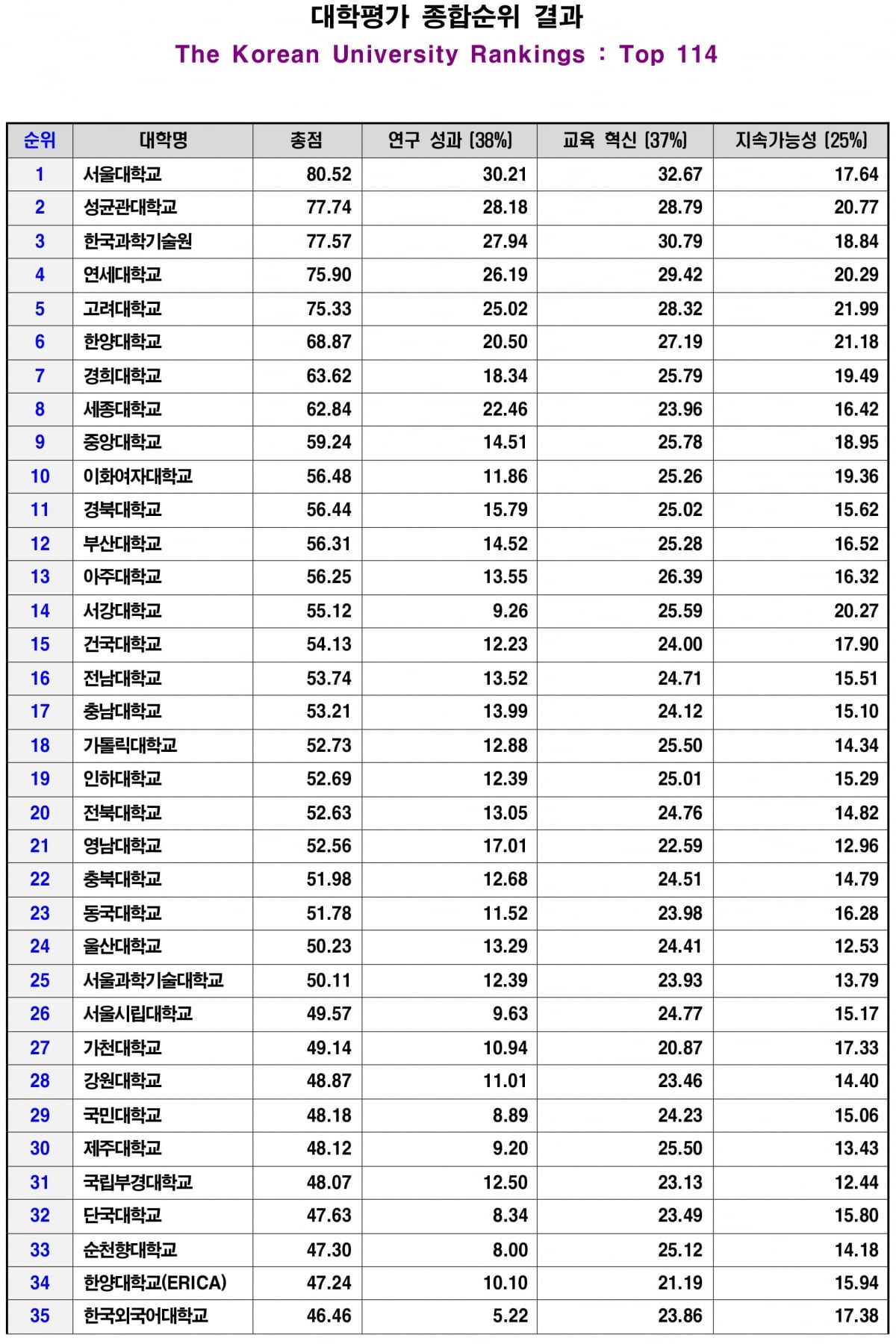 2025 INUE·한경 대학평가 순위, 사회